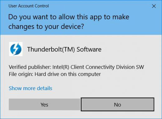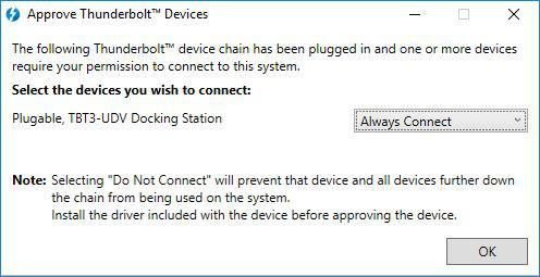 Thunderbolt 3 Authentication (DCH Thunderbolt 3 drivers & Windows App Store Thunderbolt Utility):
