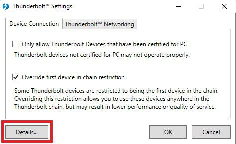 Now you should see the settings window. Click on Details to find out all of the Thunderbolt software and controller information: