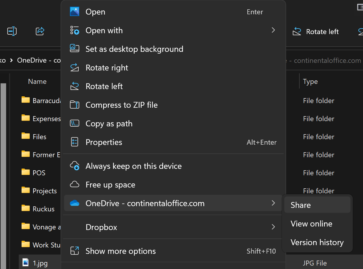 Right click the file, choose OneDrive - continentaloffice.com > Share