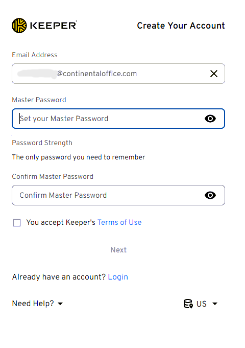 Here you will choose your master password. This should be totally unique, NOT the same thing you use to log on your computer every day, and IT will not be able to see this or tell you what it is if you forget it.