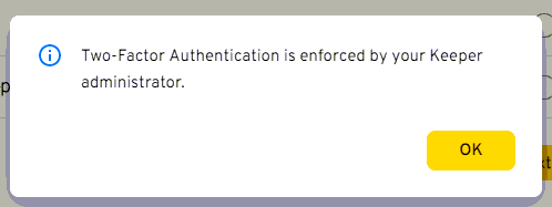 Once you have your master password set you will be notified that you must enroll in 2FA. Click OK.