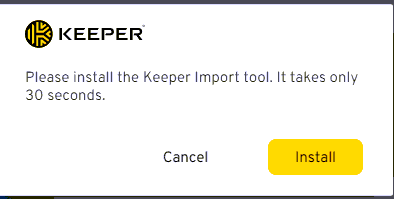 It will ask you to install the Keeper Import tool. Click Install.