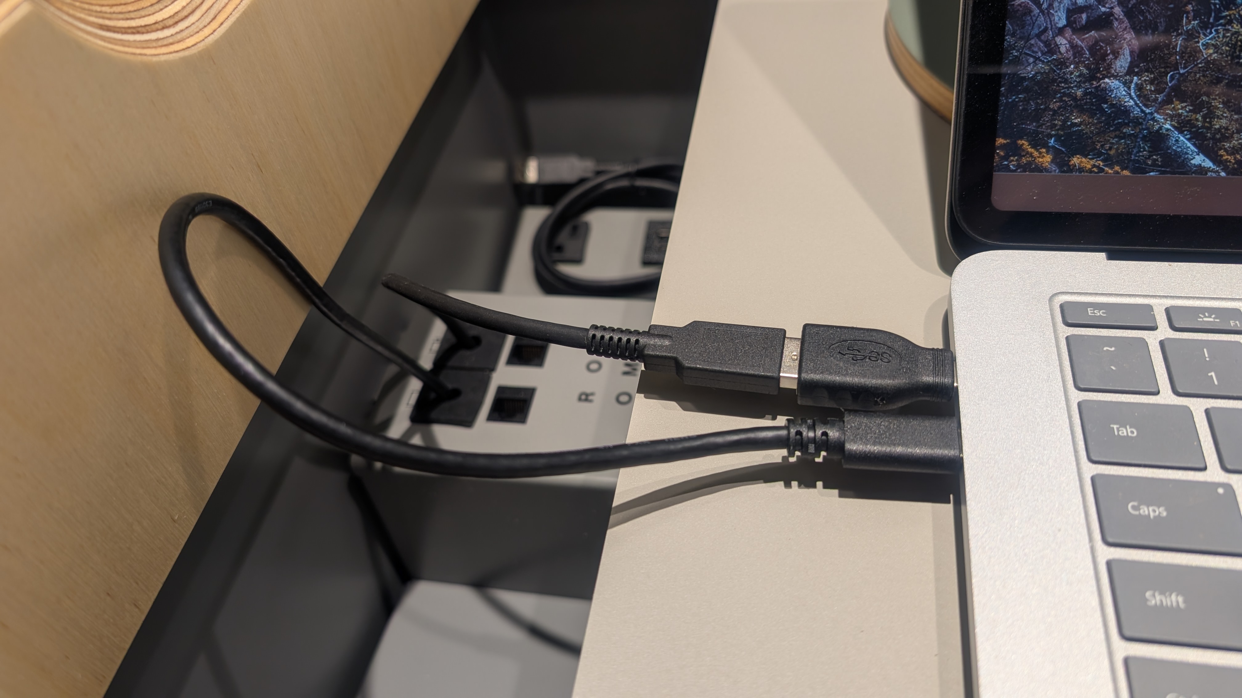 When you are done, just unplug the USB cables from your laptop and if you removed the USB A to C adapter, please replace it on the cable so it doesn't get lost. Place the cables back in the storage area and close the lid.
